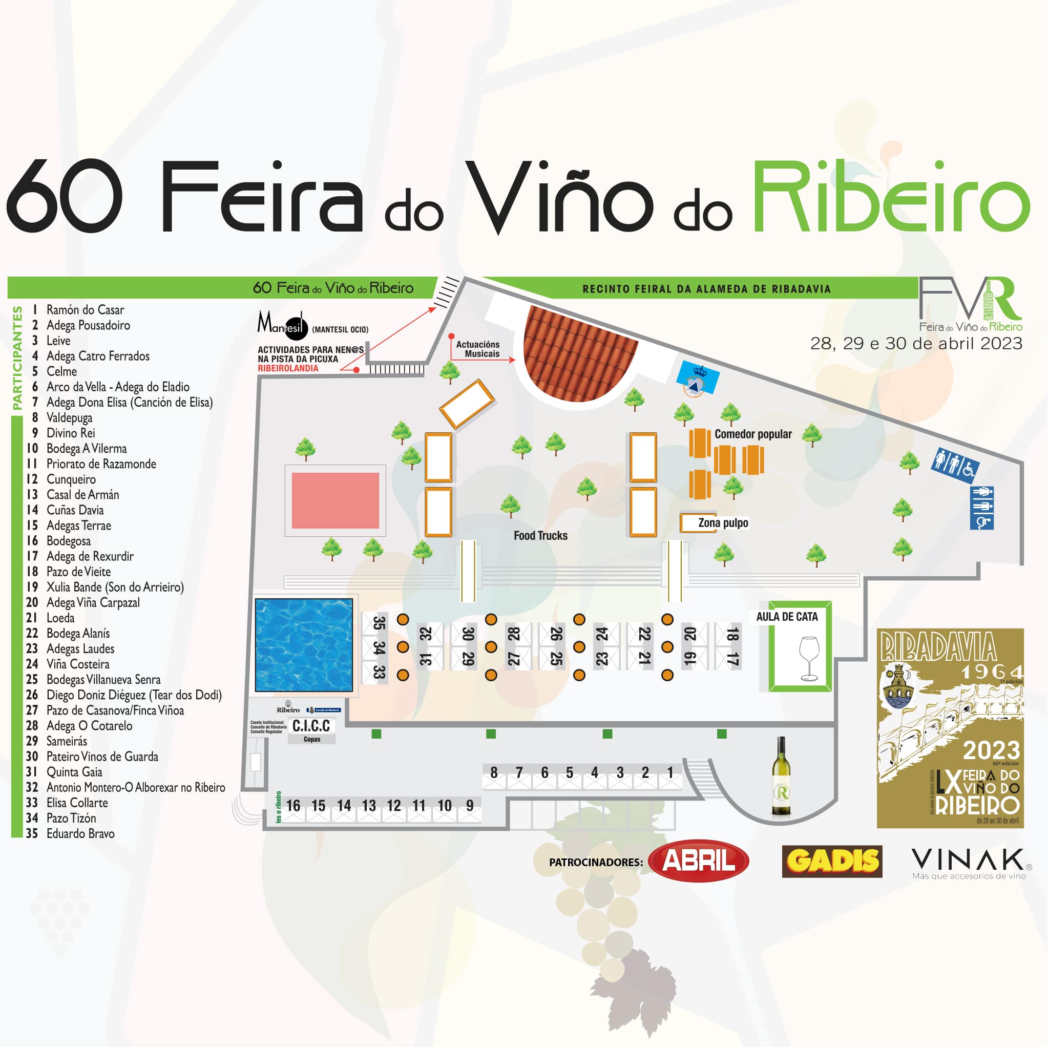 A Feira do Viño do Ribeiro, que este ano alcanza a súa 60ª edición, terá lugar os vindeiros días 28, 29 e 30 de abril de 2023, no recinto da Alameda en Ribadavia (Ourense), presenta as actividades que se levarán a cabo na presente edición.